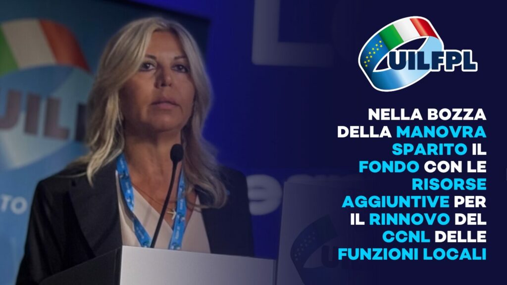 “Nella bozza di manovra non c’è traccia del Fondo che prevedeva risorse aggiuntive per il rinnovo del CCNL delle Funzioni Locali,” dichiara Rita Longobardi, Segretaria generale UIL FPL. “Parliamo di una previsione che era stata pubblicamente annunciata nella conferenza stampa ufficiale di presentazione della manovra e in più sedi istituzionali. È lecito chiedersi cosa sia […]